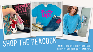 Join our Shop the Peacock group on Facebook to see all our new arrivals and sales! We have our LIVE @ 5 on Mondays!