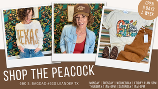 Join our Shop the Peacock group on Facebook to see all our new arrivals and sales! We have our LIVE @ 5 on Mondays!