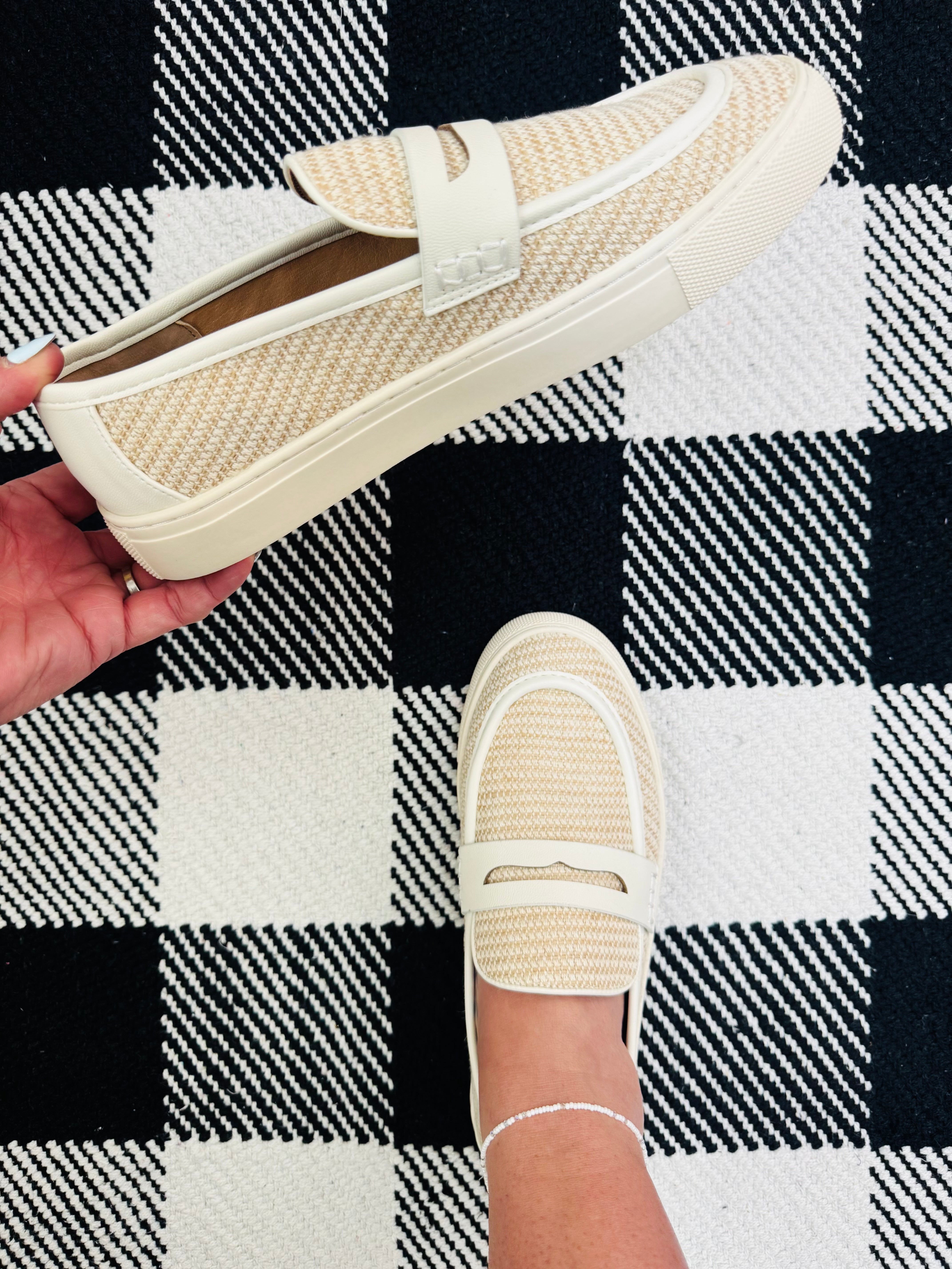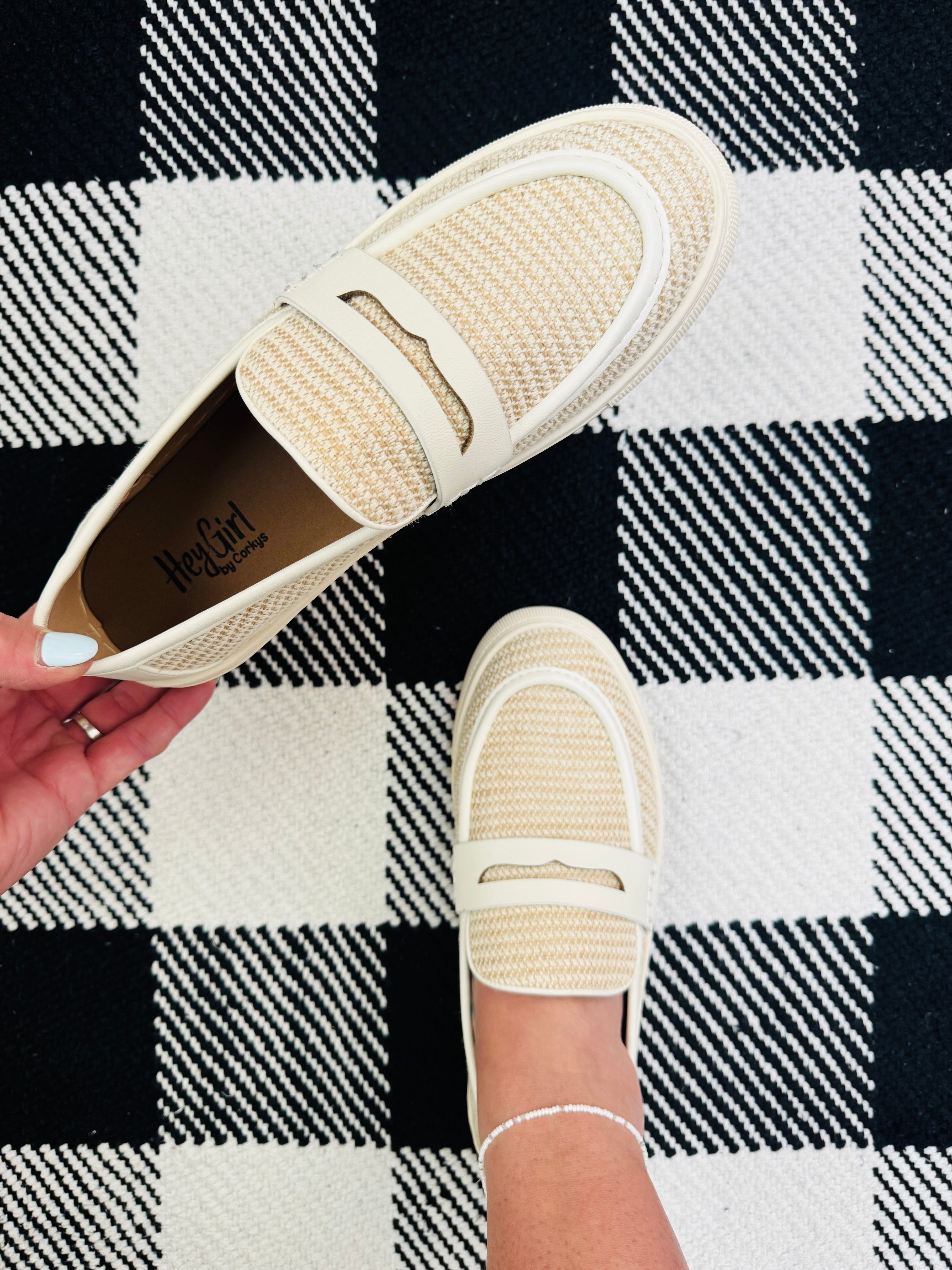 Step into effortless, everyday style with the Group Chat Loafer by Corkys. This slip-on favorite blends classic polish with all-day comfort, featuring a cushioned footbed and easy, on-the-go design. The fresh white and khaki combo gives it the perfect summer vibe—light, versatile, and ready to pair with everything from casual denim to breezy dresses. From errands to evenings, this loafer keeps up in style.