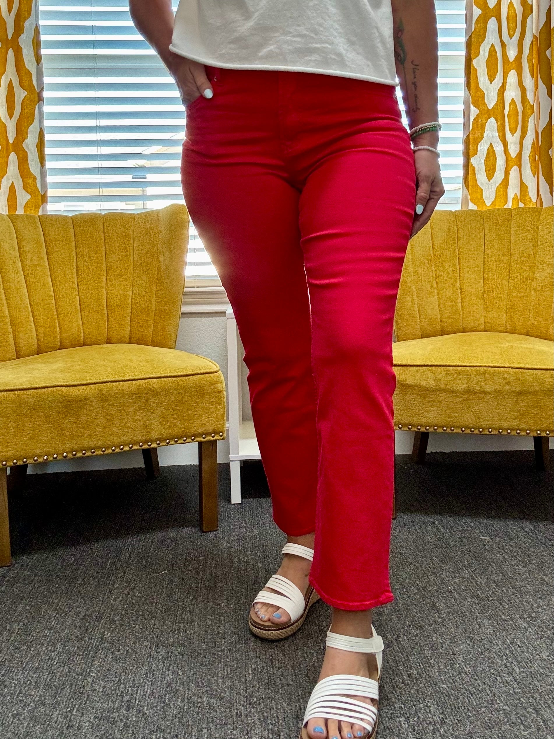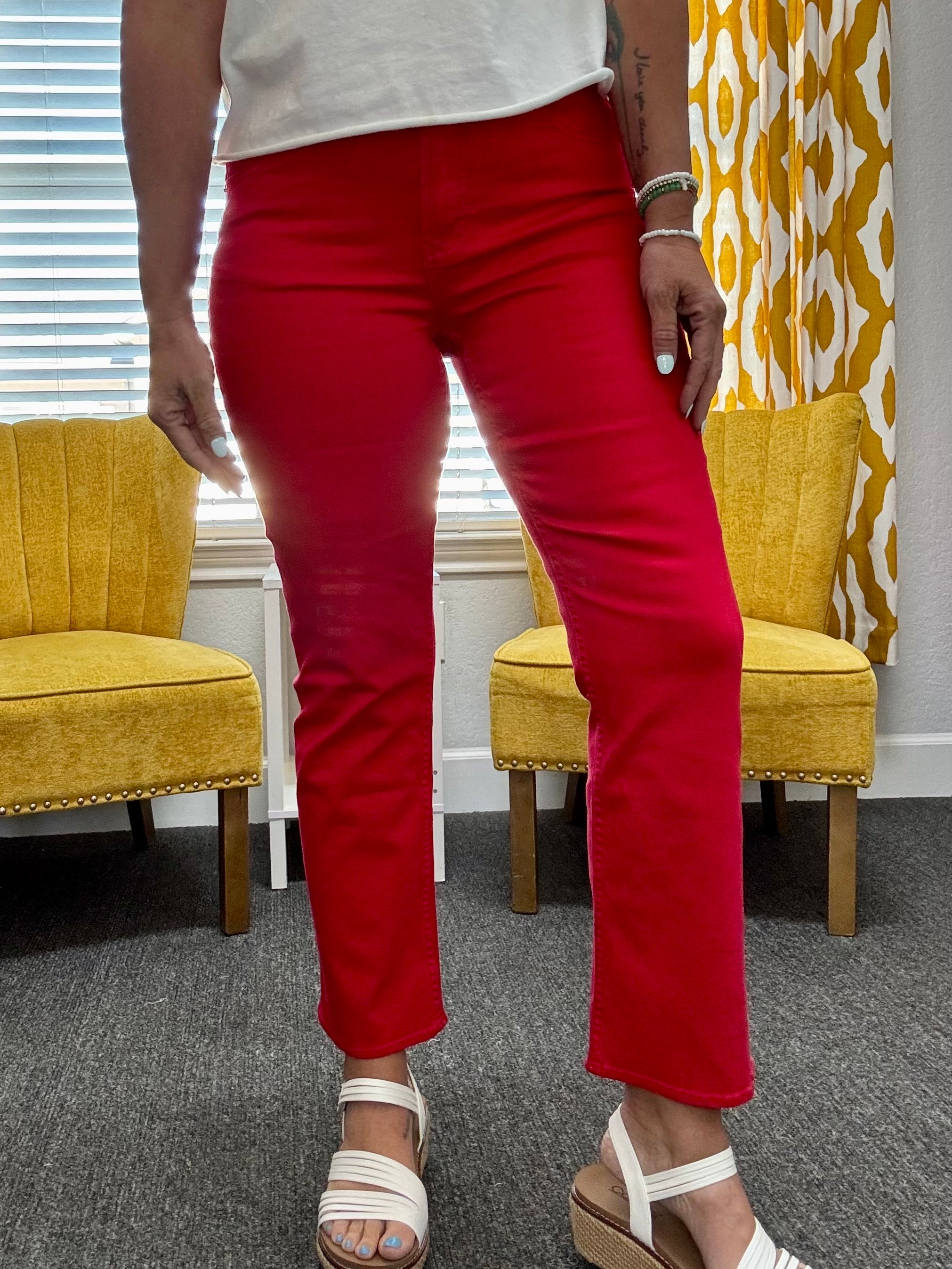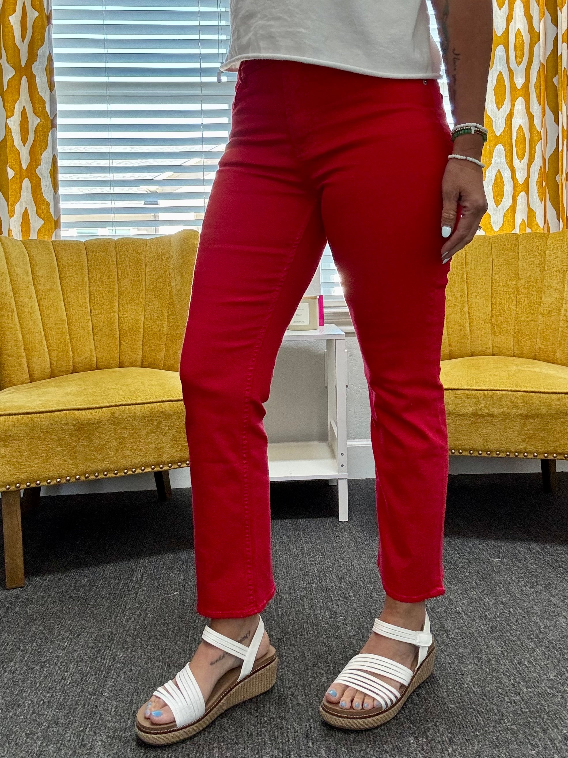 The Anika Mid-Rise Jean is beautifully crafted in a flattering straight-leg silhouette with a clean hem for a sleek, seamless look. Finished in the bold yet timeless Salsa red, this standout denim brings the perfect pop of color for USA celebrations and transitions effortlessly into year-round wear — from patriotic moments to everyday outfits.