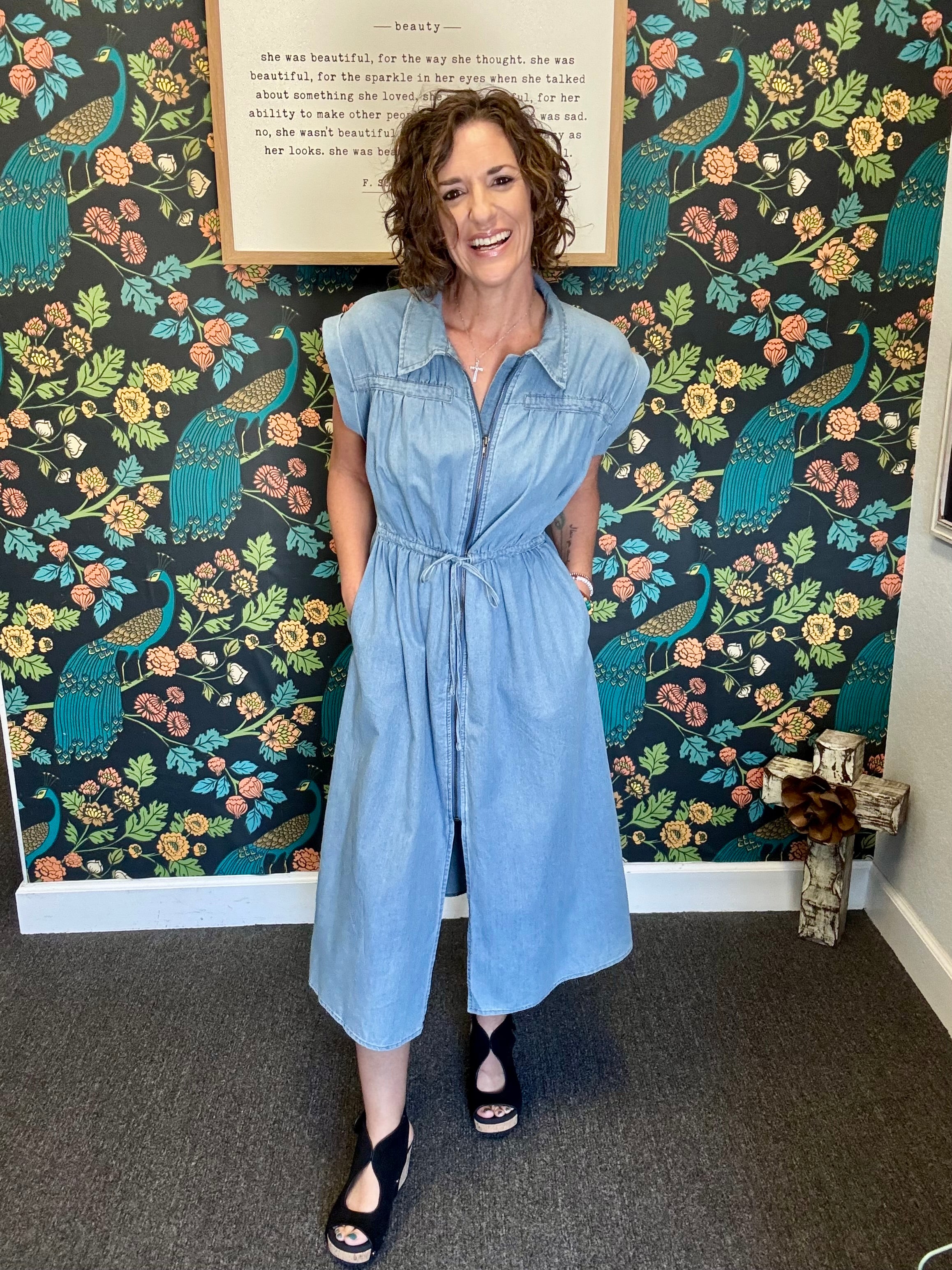 Experience effortless style with the Stonewash Zip Dress, crafted from light denim for a comfortable, breathable fit. Featuring a zipper front for easy wear, a drawstring waist to flatter your silhouette, a classic collar, and cuffed short sleeves, this dress blends casual cool with practical details. Perfect for day-to-night wear, it offers both comfort and versatility to elevate your wardrobe.