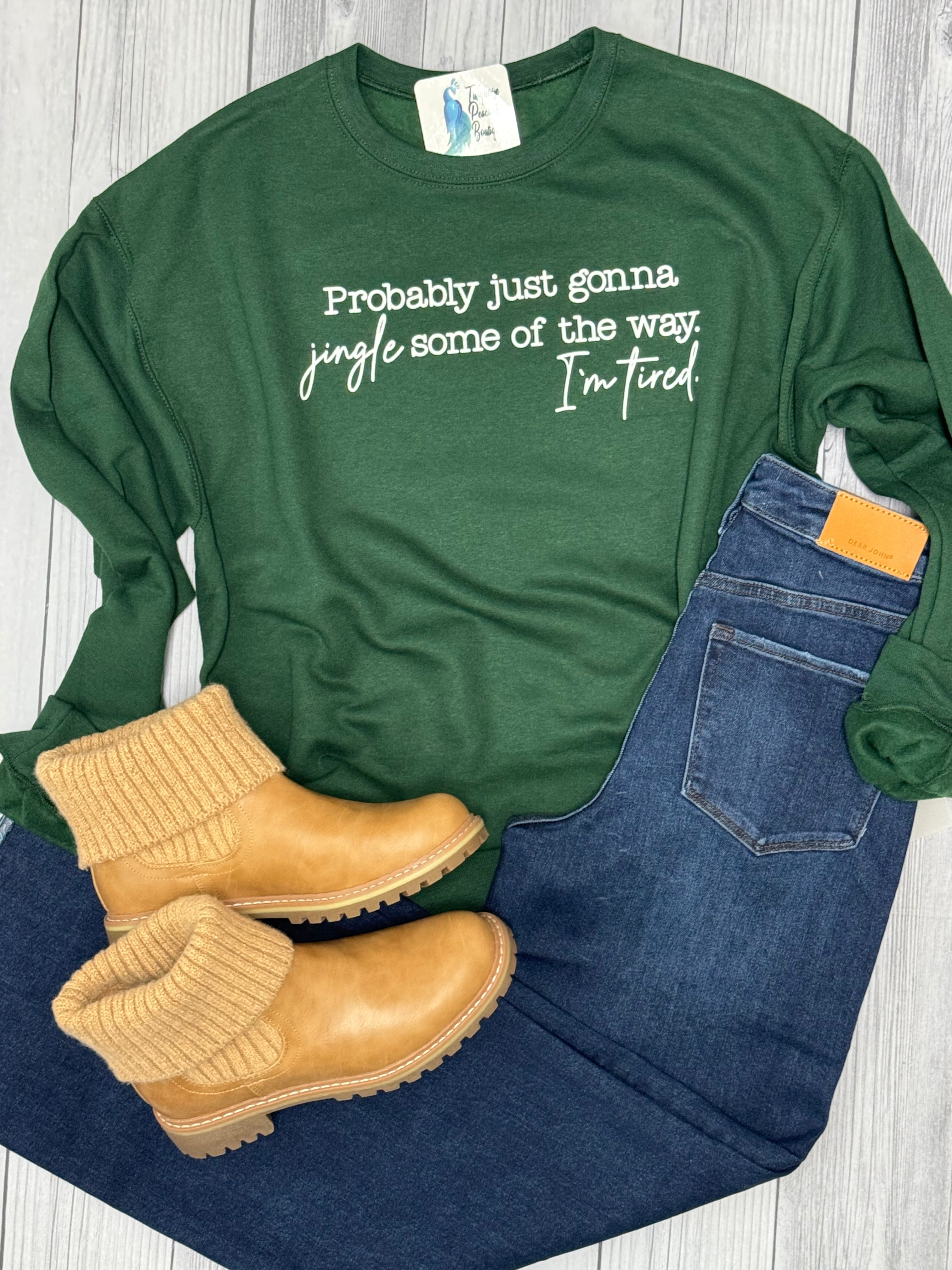 The Halfway Jingle Sweatshirt is holiday humor at its coziest! This forest green cutie says exactly what we’re all thinking — “Probably just gonna jingle some of the way. I’m tired.” Made from soft, comfy fabric with that perfectly relaxed fit, it’s the ideal throw-on for busy days, lazy days, and everything in between. Festive, funny, and totally you all season long.