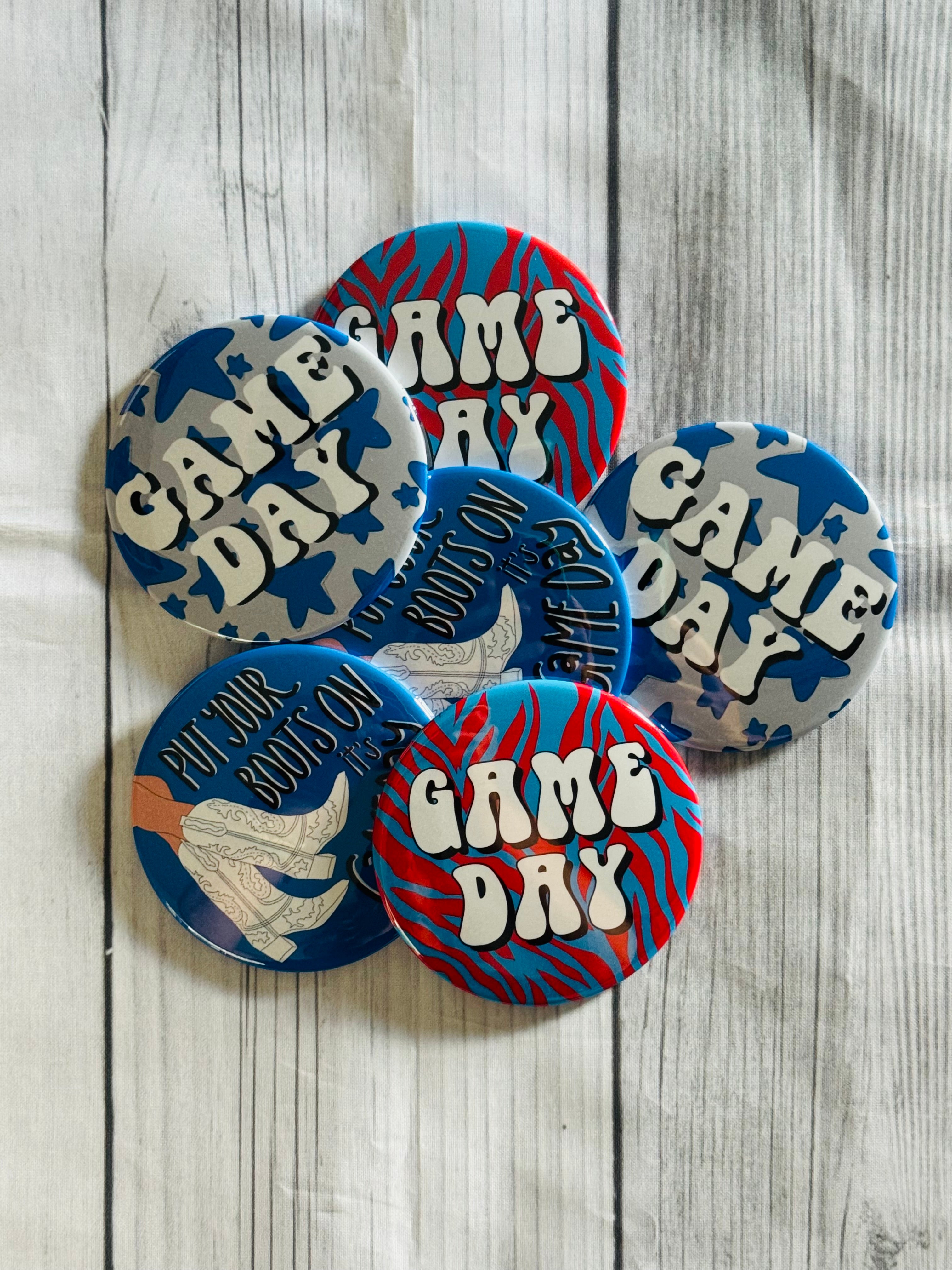 Show your team spirit and add a playful touch to your outfit with these adorable Tailgated Co Buttons. Perfect for game day or any day, these cute buttons let you cheer loud and proud while accessorizing with fun flair. Go team!