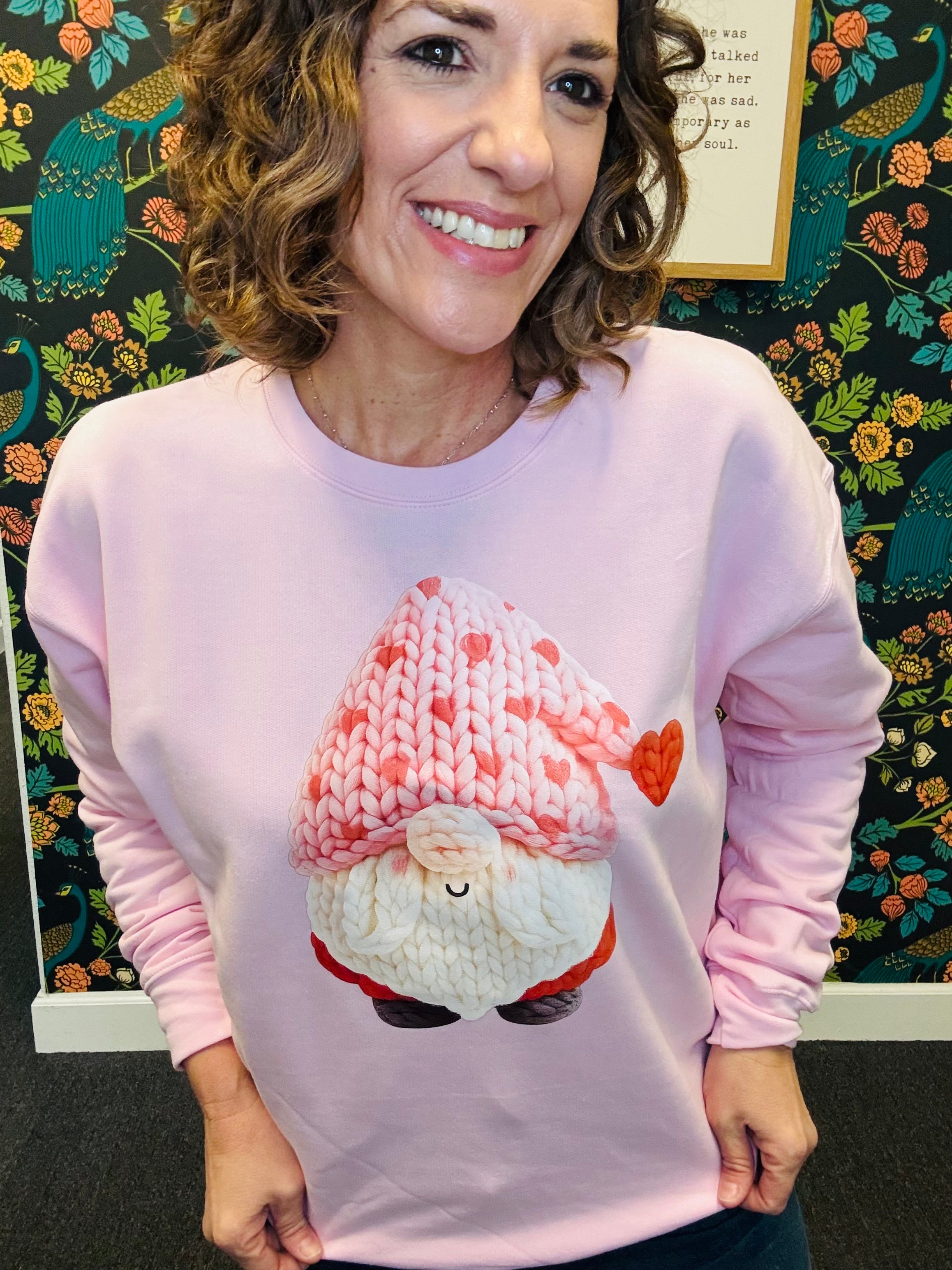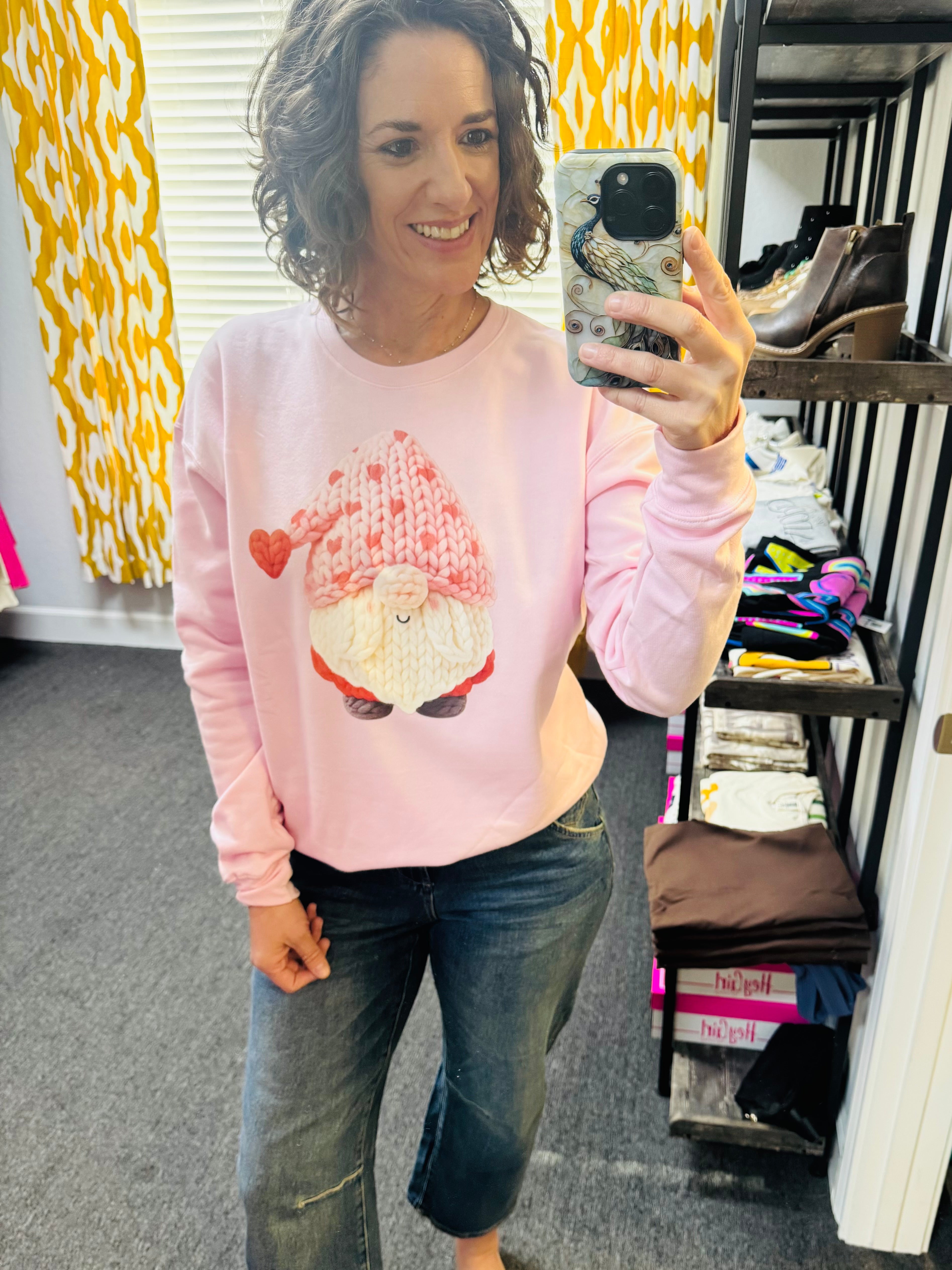 Meet your new cozy crush. Our Snuggle Gnome Sweatshirt features an adorable faux-crochet gnome print on the softest pink sweatshirt—made for comfort, charm, and everyday wear. With a relaxed fit and lived-in feel, it’s perfect for coffee runs, couch days, or pairing with your favorite denim. Sweet, snuggly, and impossible not to love.