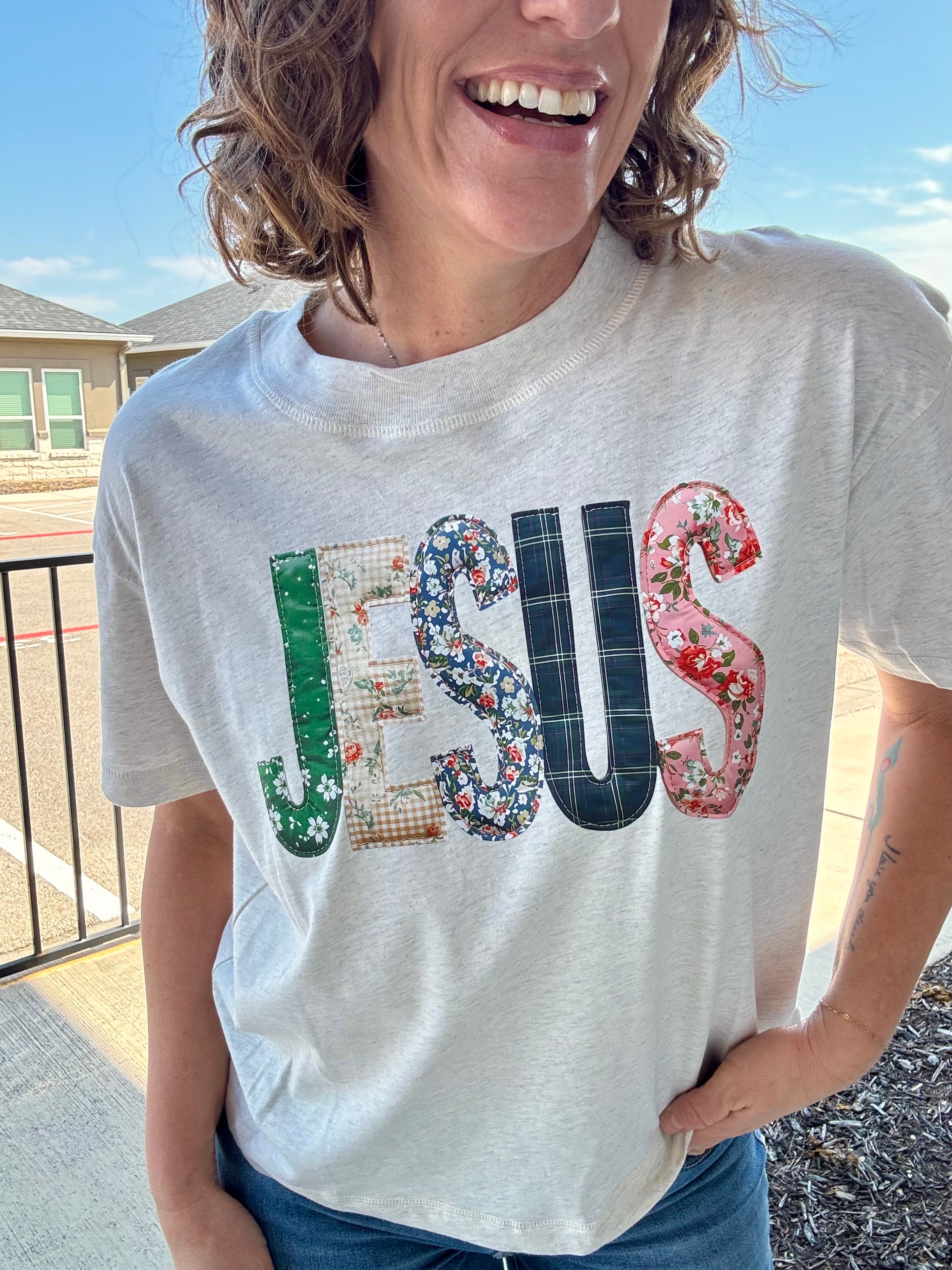 Faith meets springtime style with the Jesus Blooms Tee. This natural heather, slightly oversized boxy tee features the name JESUS beautifully rendered in colorful floral prints, giving each letter a soft, garden-inspired charm.