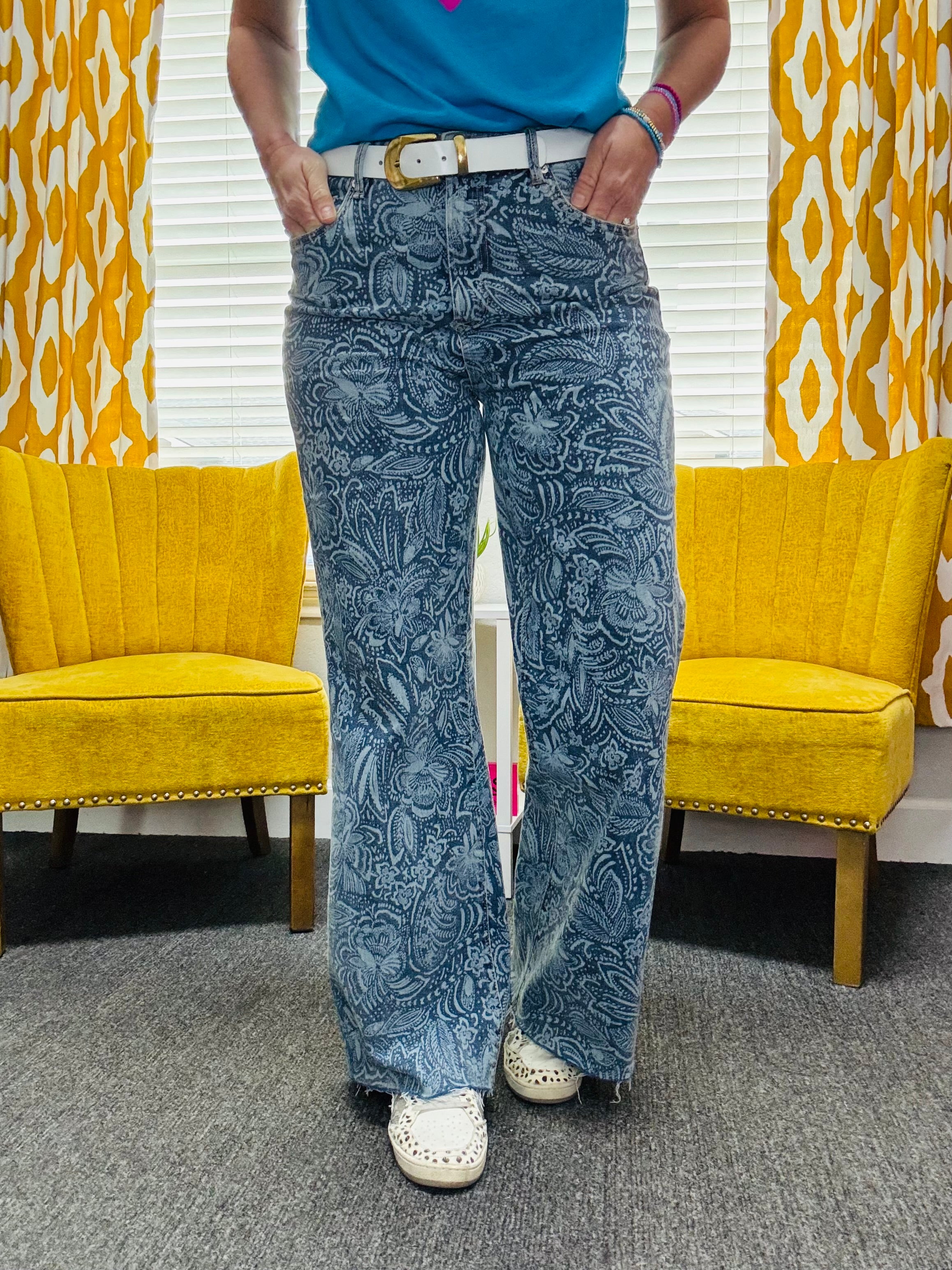 Meet the newest Fiona Jeans — Avalon - our best seller for a reason. The fit is that good. Designed with a flattering high rise and an easy relaxed fit, these jeans move with you for all-day comfort while still making a statement. The medium wash paired with a subtle lighter denim floral print adds a fresh, modern twist you won’t see everywhere.