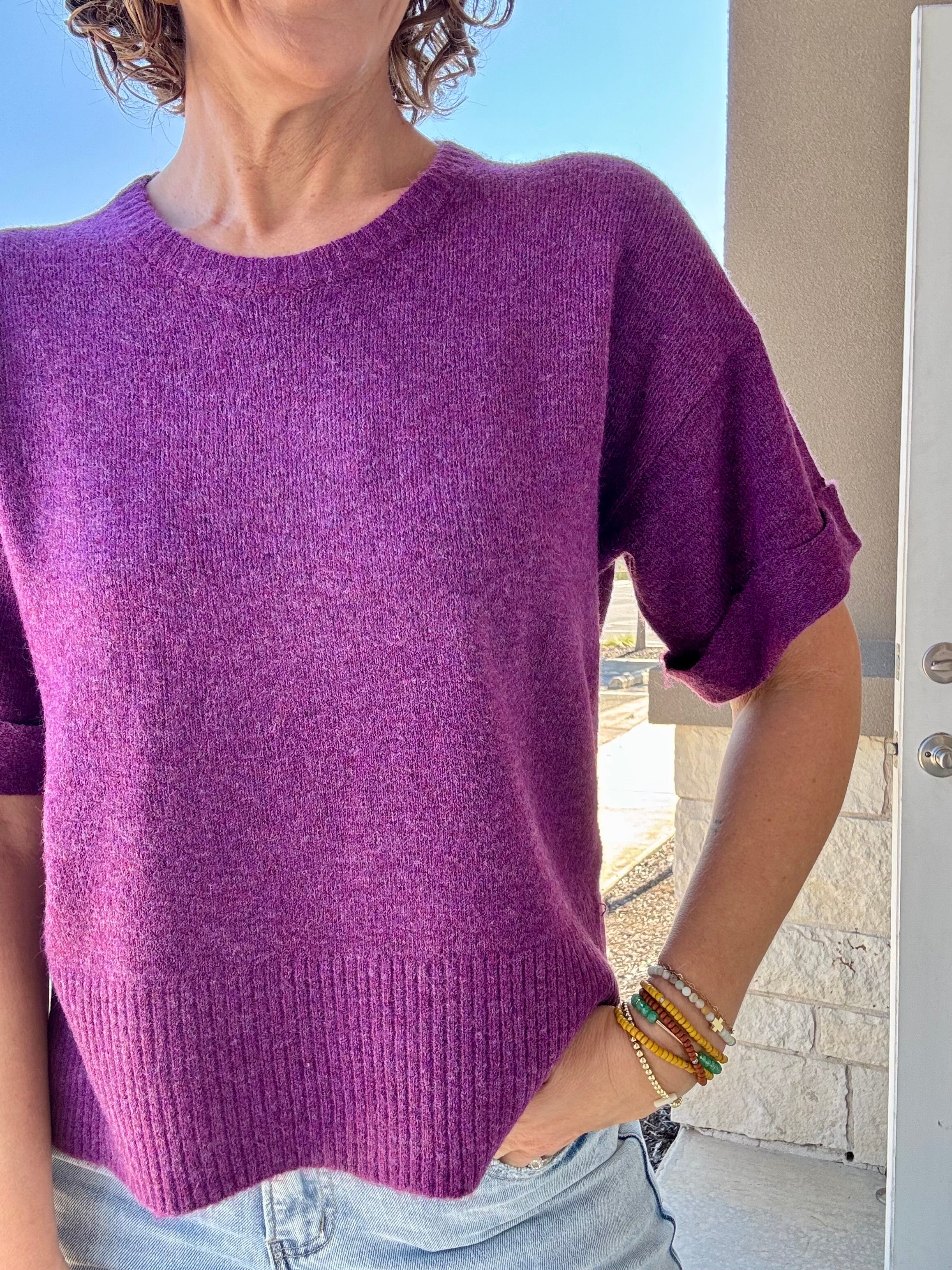 The Orchid Catrina Sweater from Another Love Clothing brings effortless style with a touch of sophistication. This oversized short-sleeve crewneck sweater combines cozy comfort with a refined silhouette, making it perfect for any season. The rich orchid hue adds a pop of vibrant elegance — pair it with denim or trousers for an easy, elevated look.