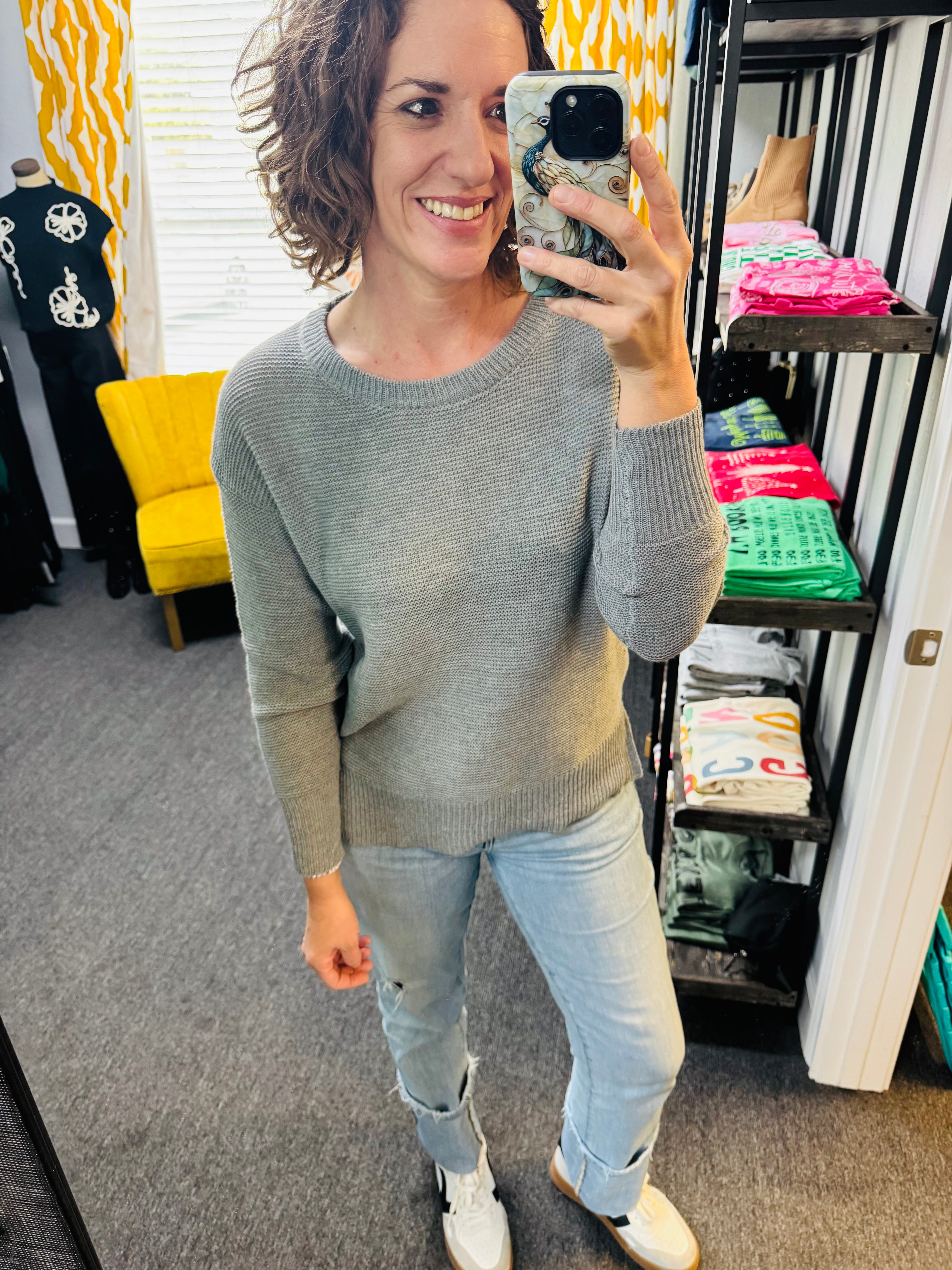 Effortlessly cozy and chic, The Boyfriend Sweater features a slightly oversized fit in a soft, lightweight grey knit. Long sleeves and subtle side slits add a relaxed, modern touch, making it perfect for layering or wearing on its own for an easy, everyday look.