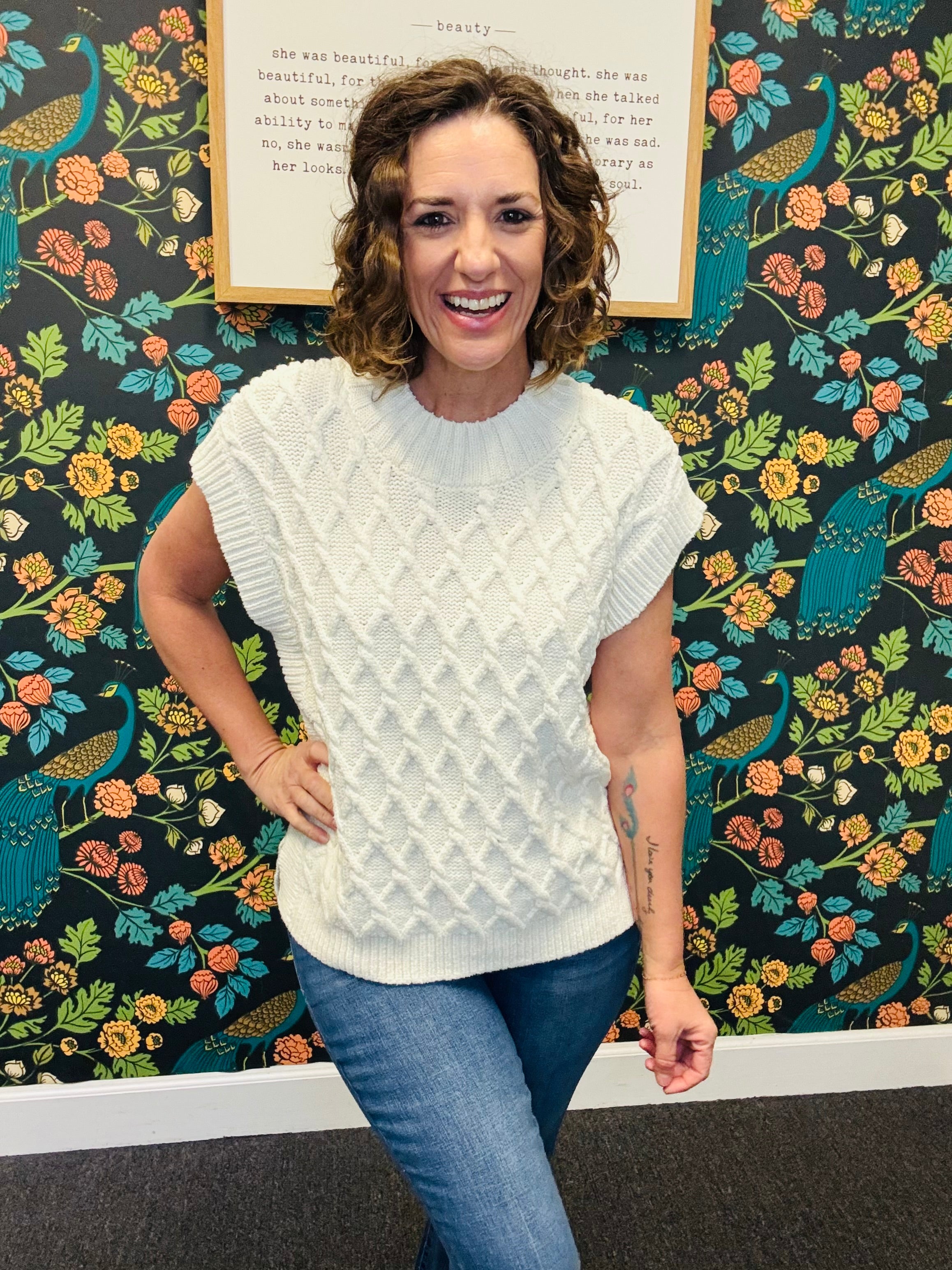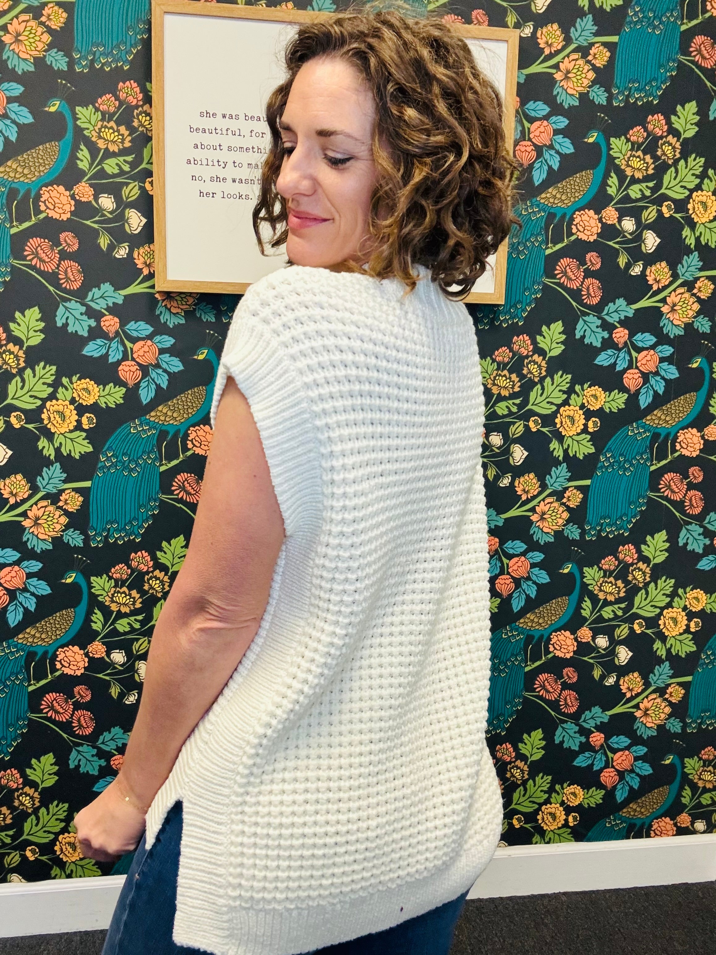 Meet your new seasonal favorite – the Sleeveless Briana Wide Neck Sweater. In a soft, ultra-comfy knit, this sweater drapes perfectly with an oversized yet flattering fit. The wide neckline adds a touch of effortless style, making it easy to layer over long sleeves or wear on its own for a polished, chic look. Available in a versatile seasonal shade, it pairs perfectly with jeans, leggings, or skirts for a wardrobe staple you’ll wear again and again. Cozy, stylish, and totally effortless – this is the sweater you didn’t know you needed.
