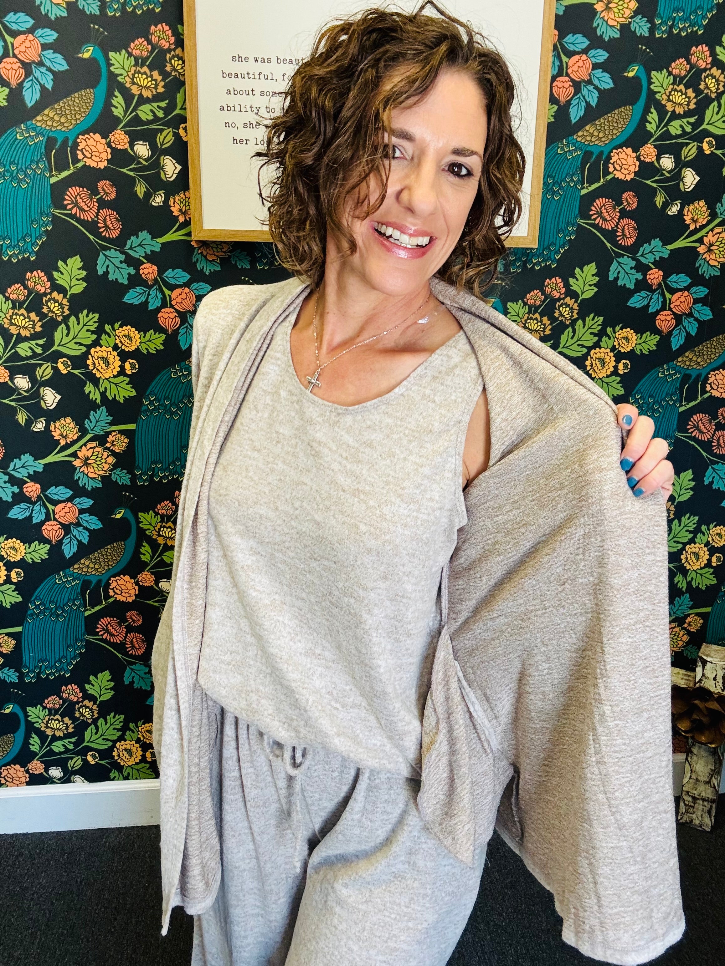 Embrace cozy vibes with the Light Mocha Sunset Jacket! Ultra-soft and snug, it’s perfect for layering over your favorite graphic tee. Pair it with the matching tank and pants for an effortlessly chic look that’s all about comfort and style. Let your wardrobe unwind in the comfiest way possible!