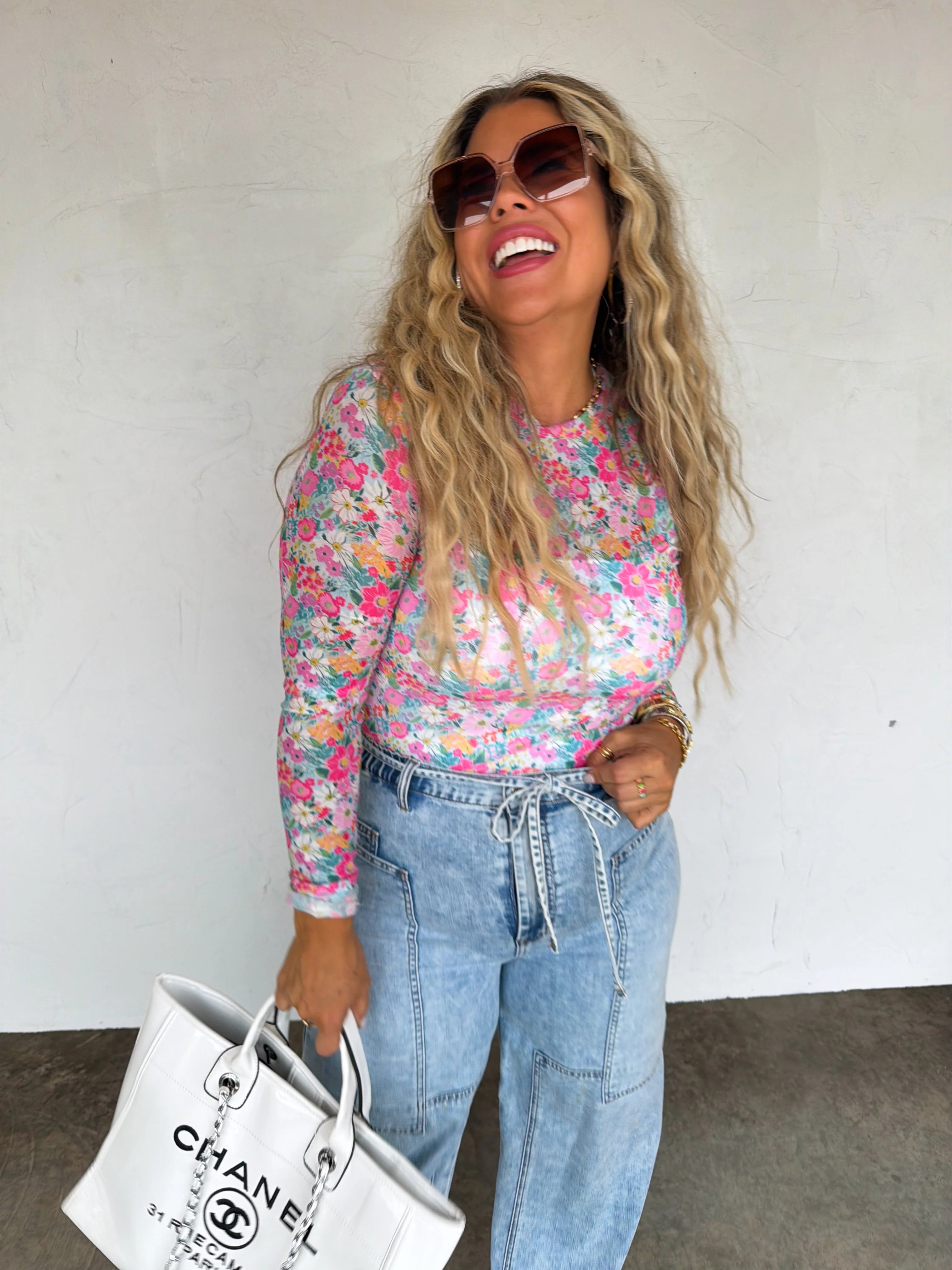 Flirty, feminine, and made for layering — the Spring Floral Mesh Top adds instant personality to any outfit. This stretchy, sheer long-sleeve features a delicate floral print that feels fresh and bold all at once.