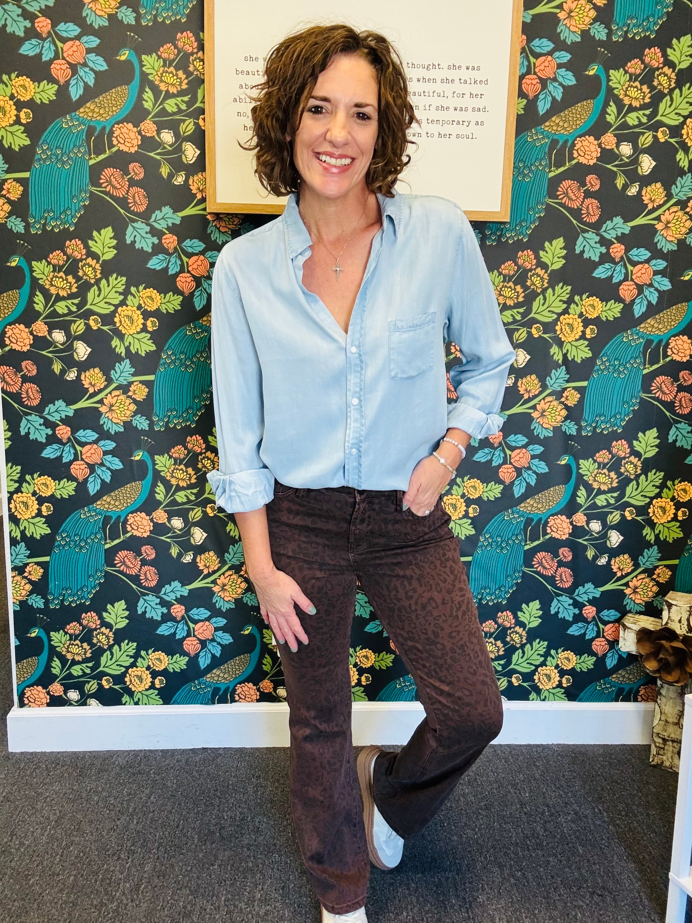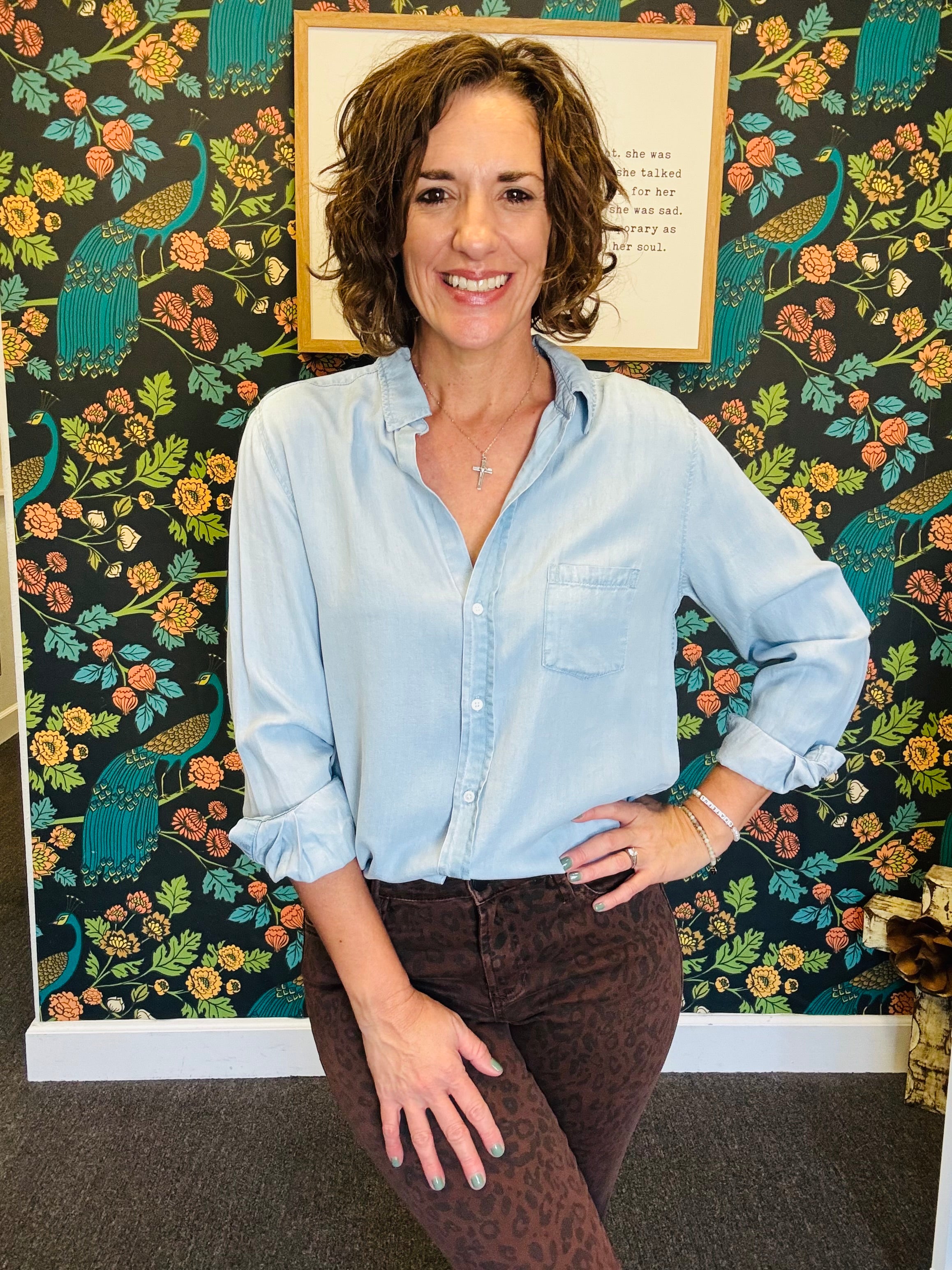 The Perfect Blue Galina showcases a refined John button-down collar, long sleeves, and a front patch pocket, tailored in a comfortable fit.