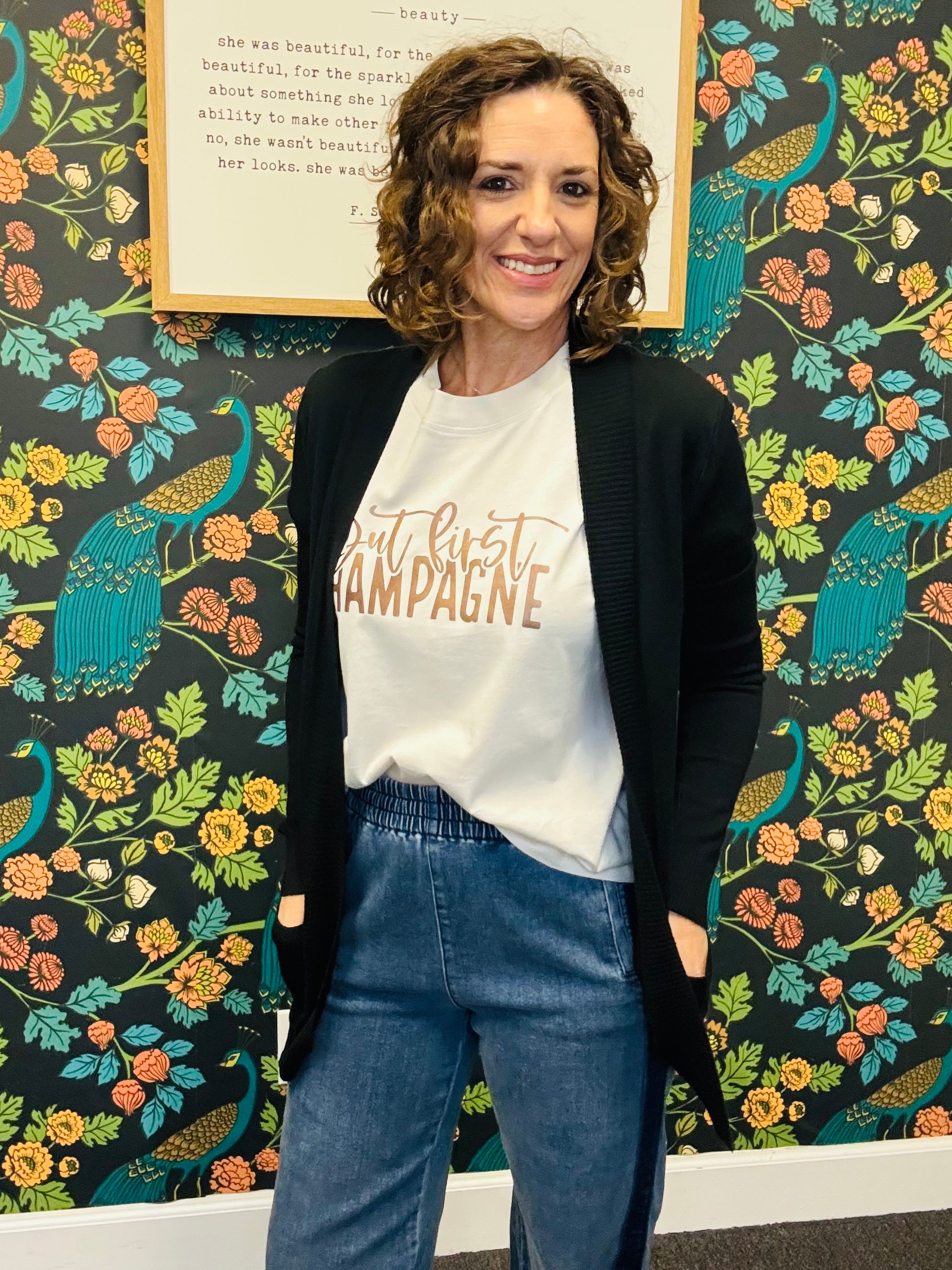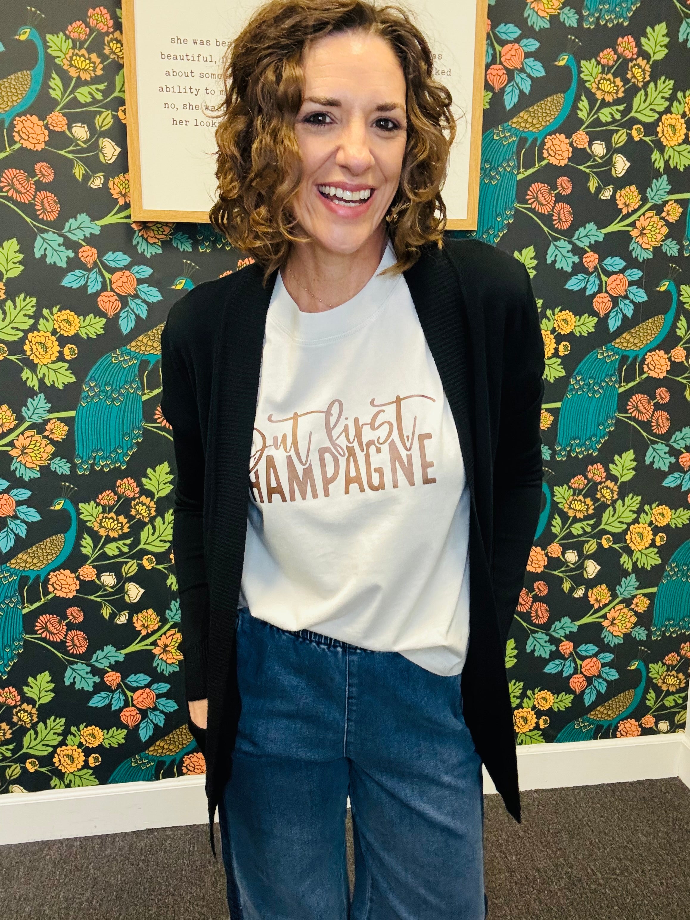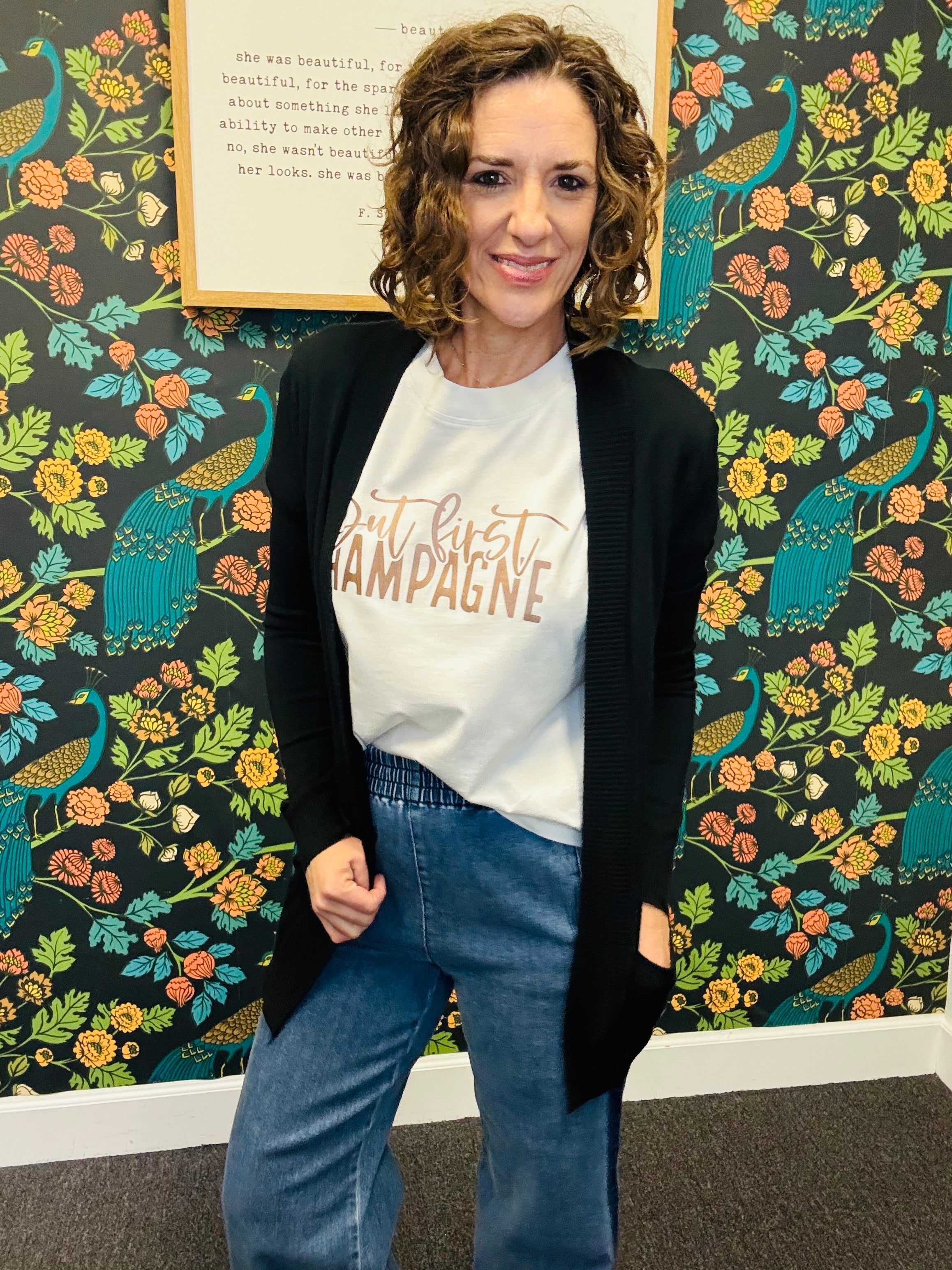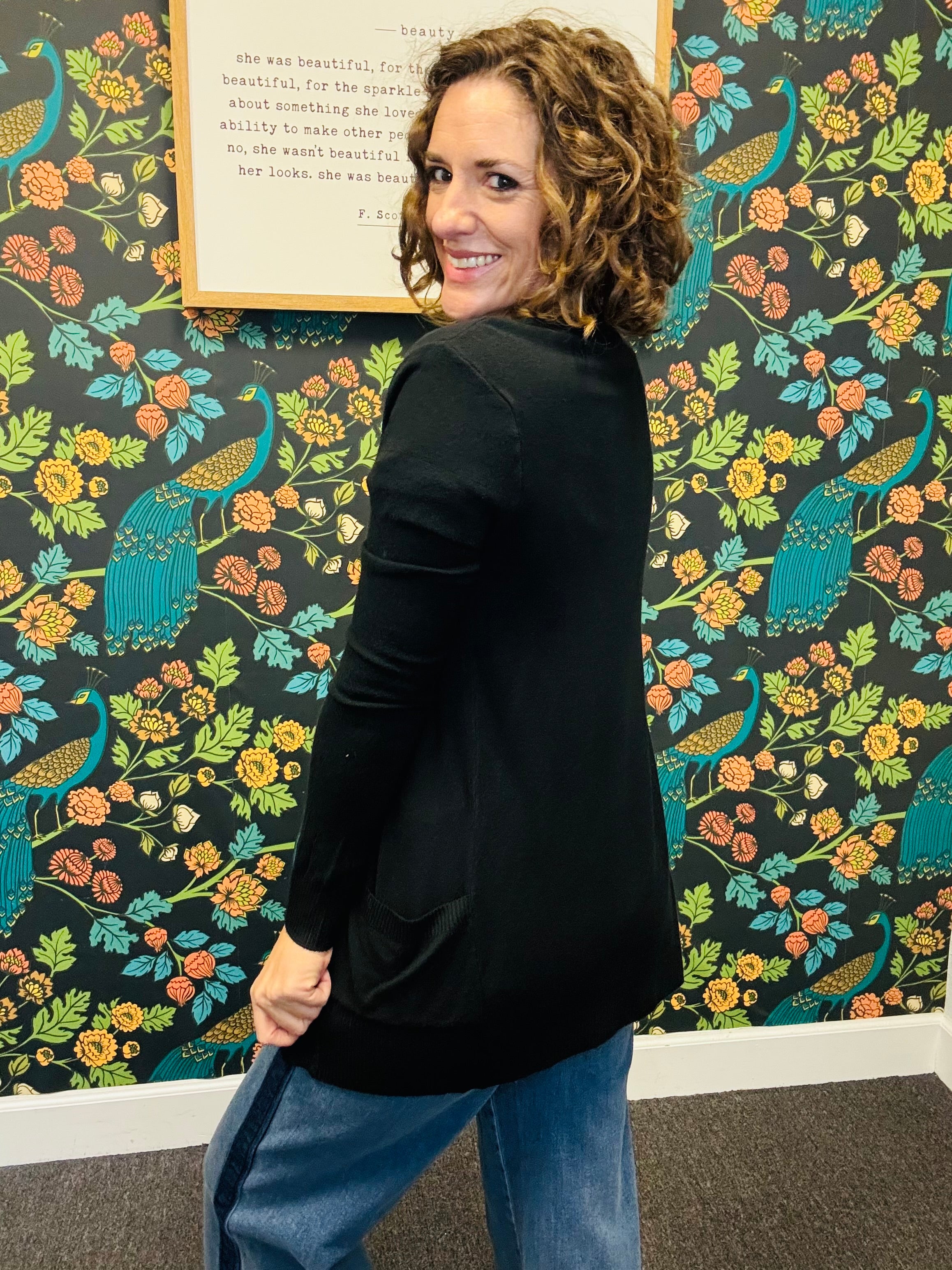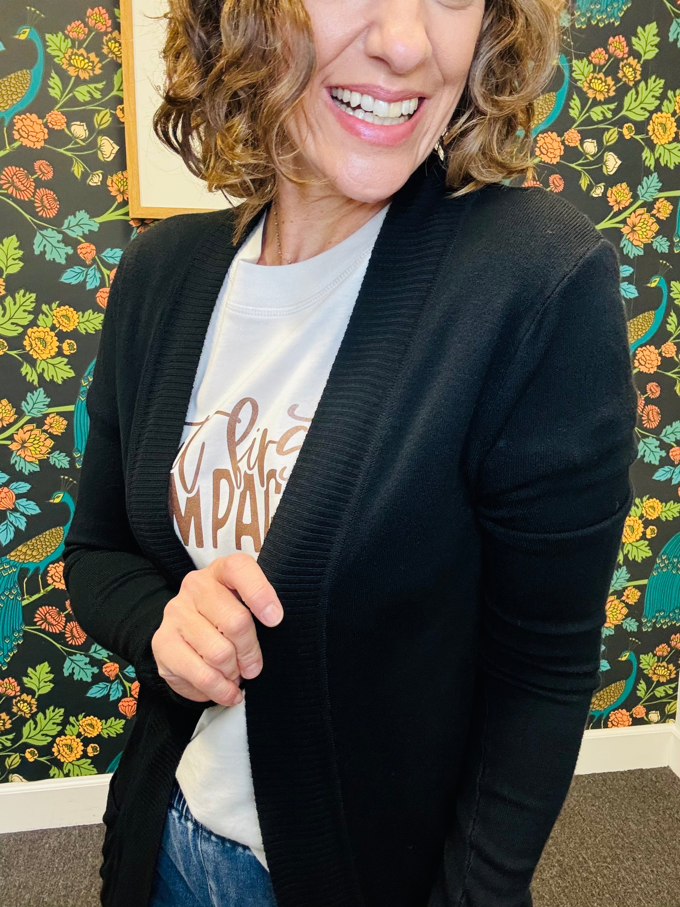 Meet your new go-to layering piece: the Black Midnight Cardigan! Crafted from a soft cotton-blend knit, this lightweight cardigan offers effortless comfort and versatility. Its classic design makes it perfect for layering over tees, tops, or dresses—ideal for adding a polished touch to any outfit without feeling heavy. A timeless, everyday essential you’ll reach for season after season.