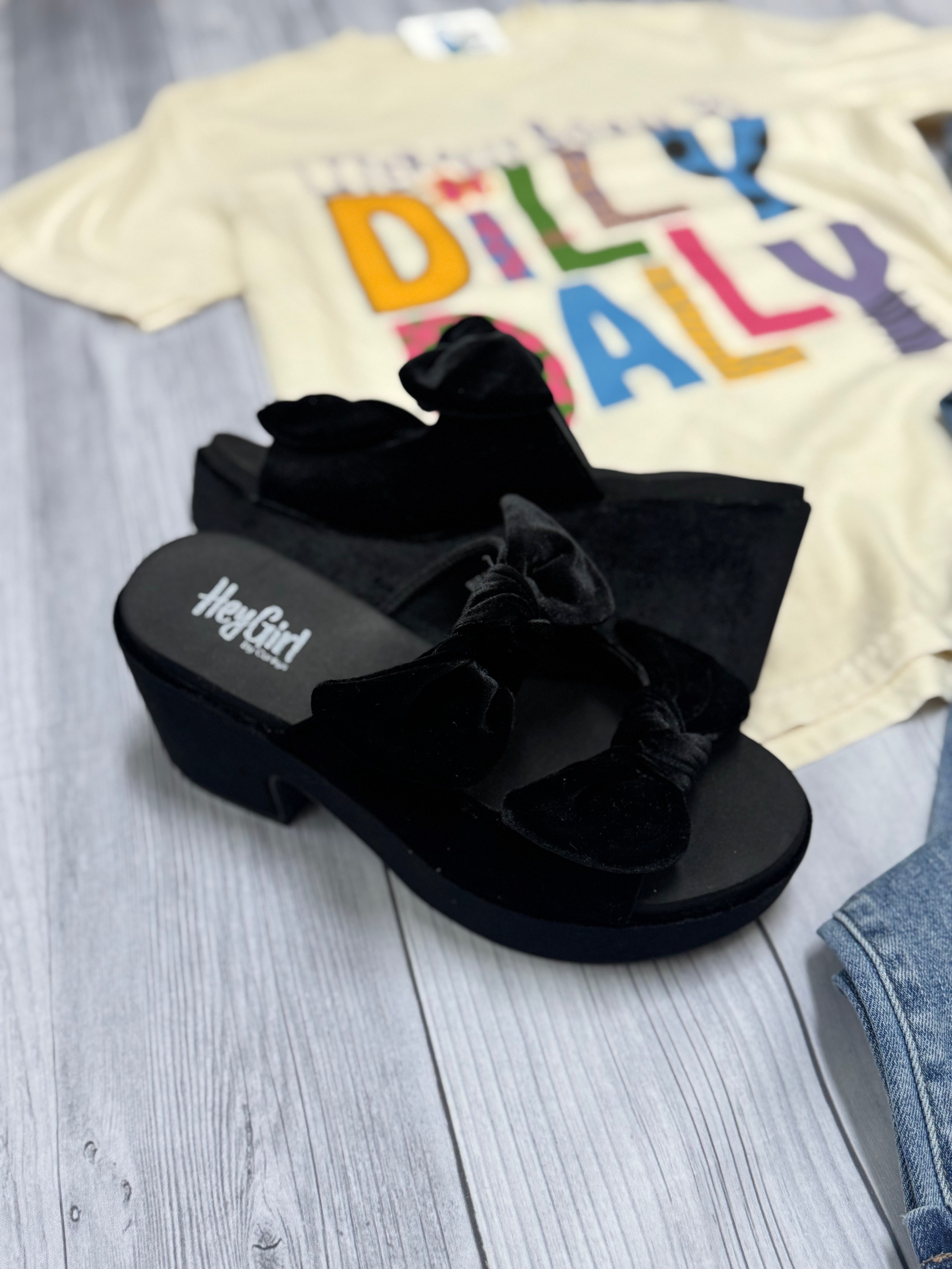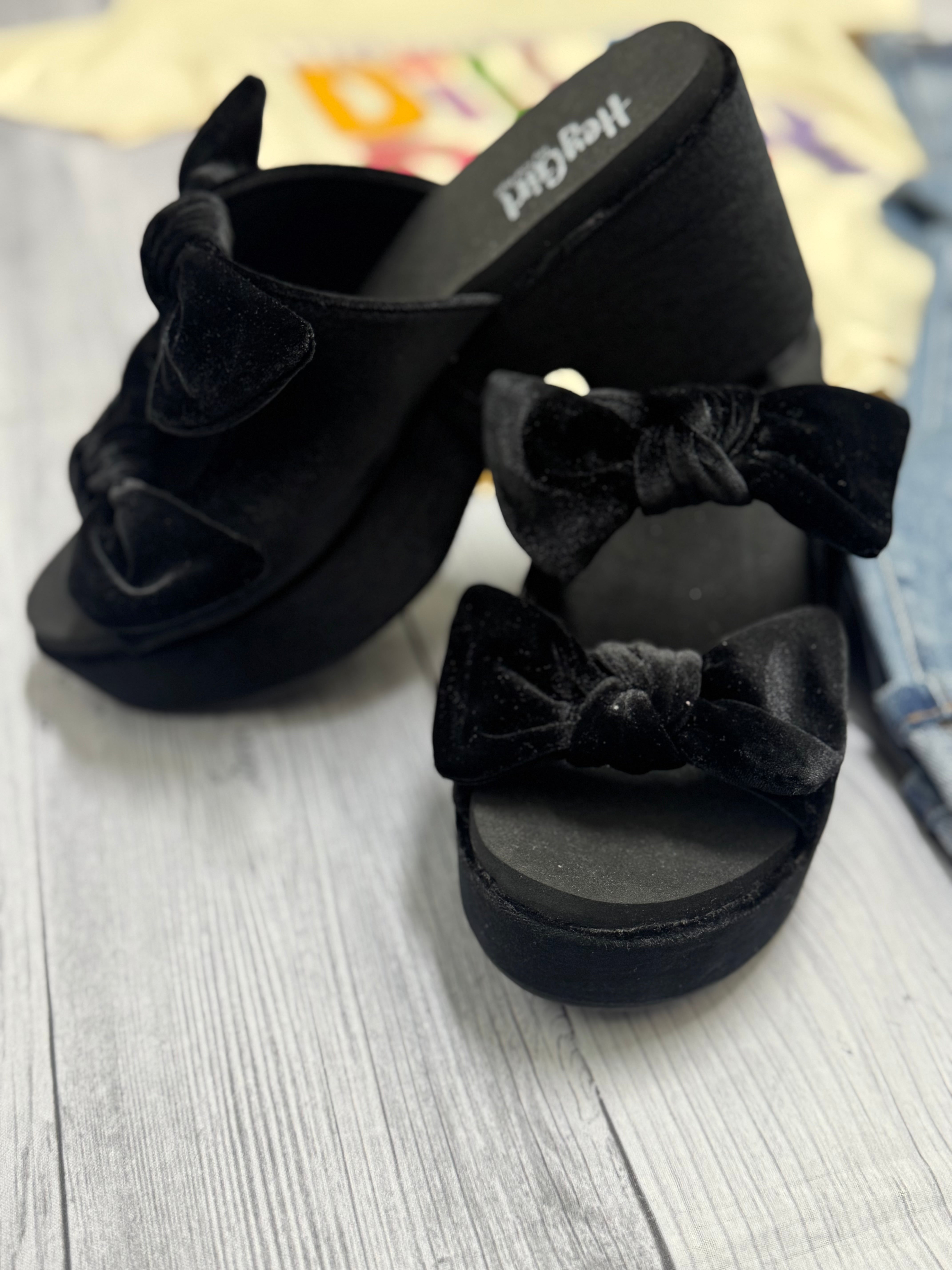 Step out in style with these velvet platform heels featuring double bows and a chunky heel for effortless chic. The cushioned insole keeps your feet comfy all day, while the luxe black velvet finish adds a touch of elegance. Pair them with a dress or your favorite denim for a playful, head-turning look.