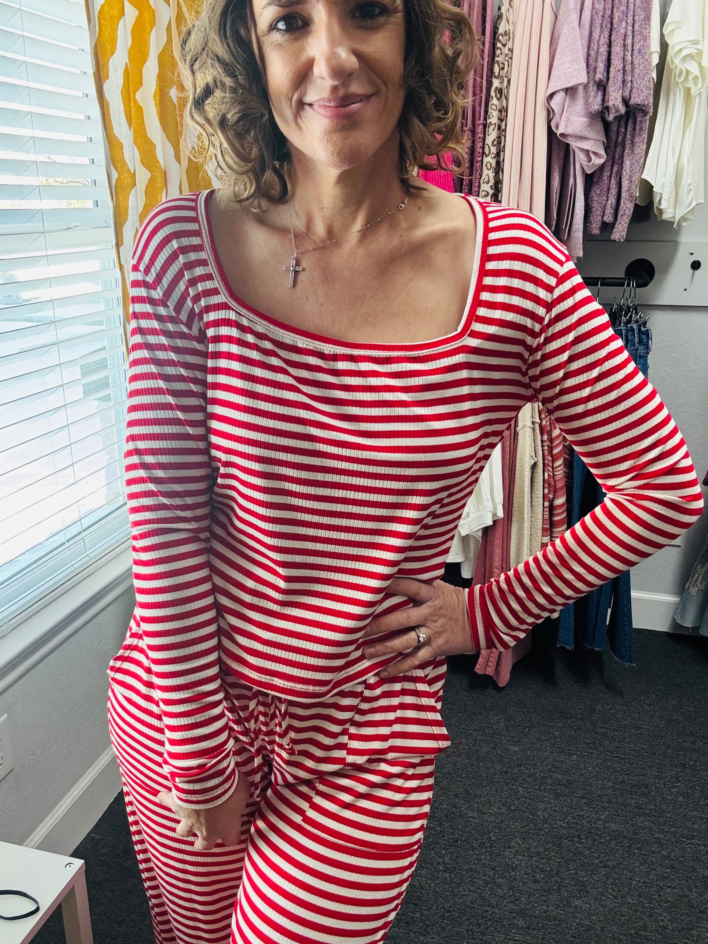 Cozy, stylish, and unbelievably soft — the Haddie Stripe Lounge Top is the perfect everyday layer you’ll want to live in. Made from a dreamy ribbed stripe fabric with amazing stretch, this top is mid-weight and not see-through at all.