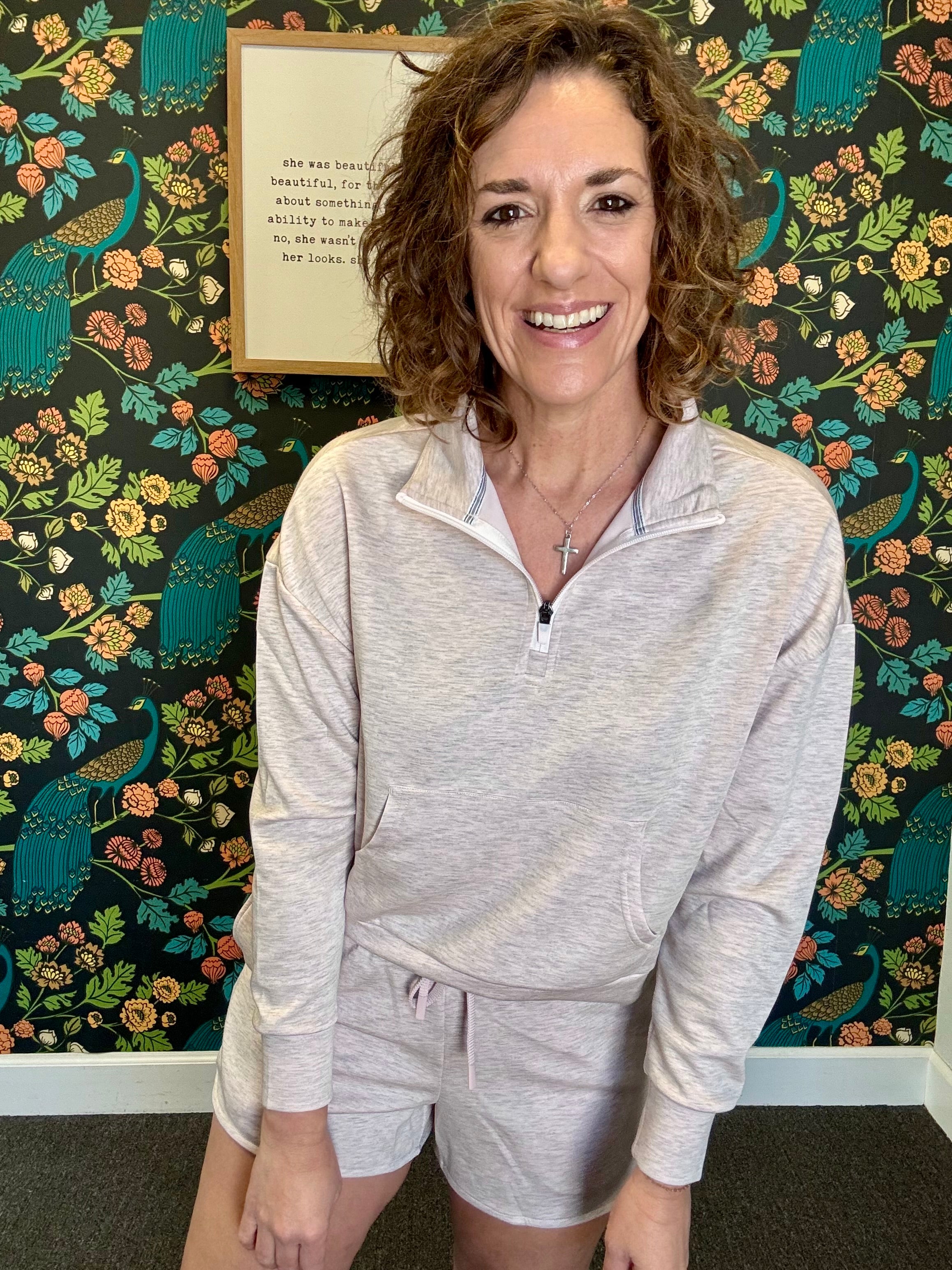 Soft, effortless, and made for everyday comfort. The Pink Heather Daydream Pullover is ultra cozy with a relaxed fit and easy quarter-zip neckline that makes it perfect for layering or wearing on its own. It pairs beautifully with the matching Pink Heather Daydream Shorts, but also styles seamlessly with denim for a casual, polished look. This is the piece you’ll throw on once… and never want to take off.