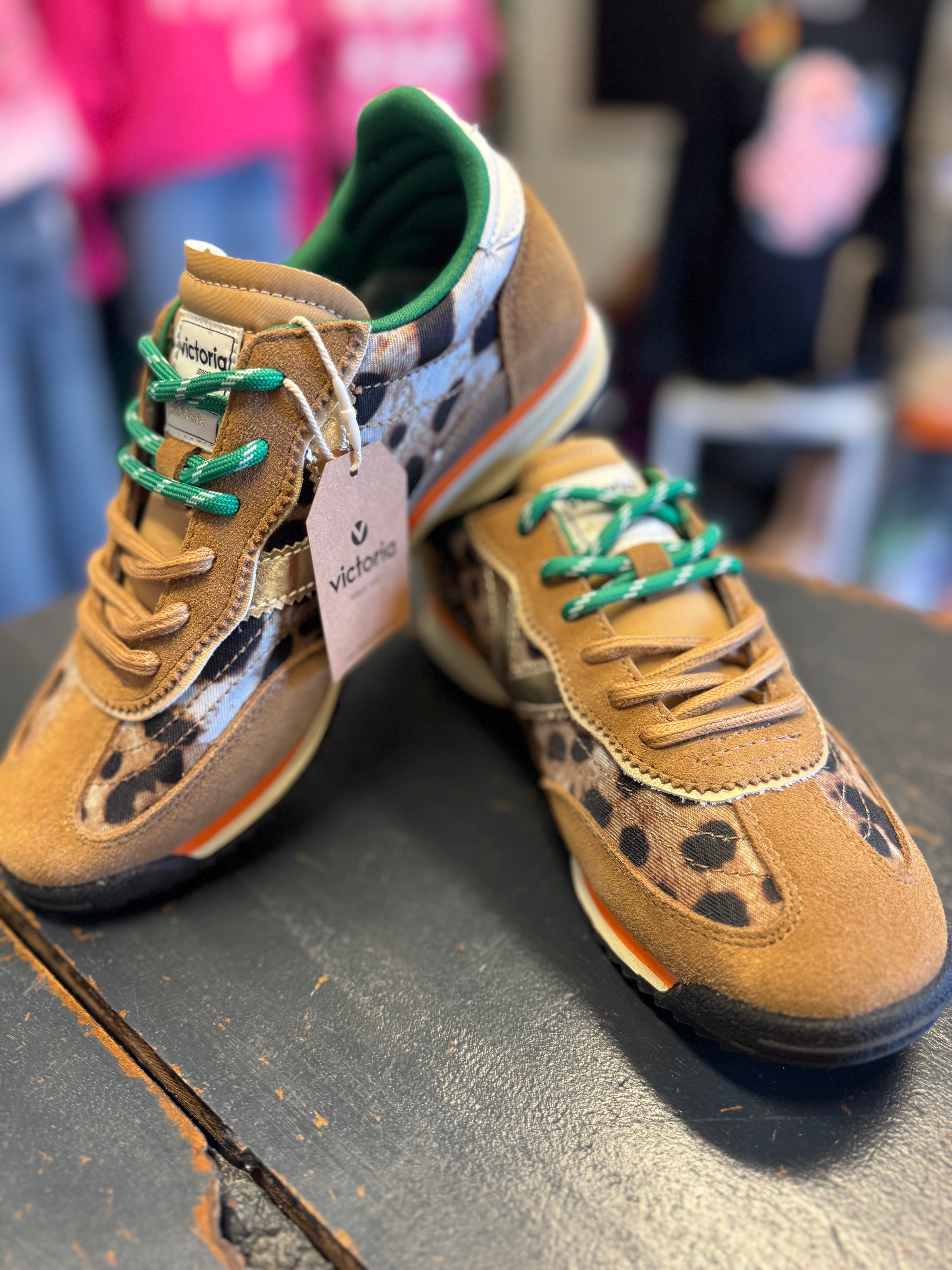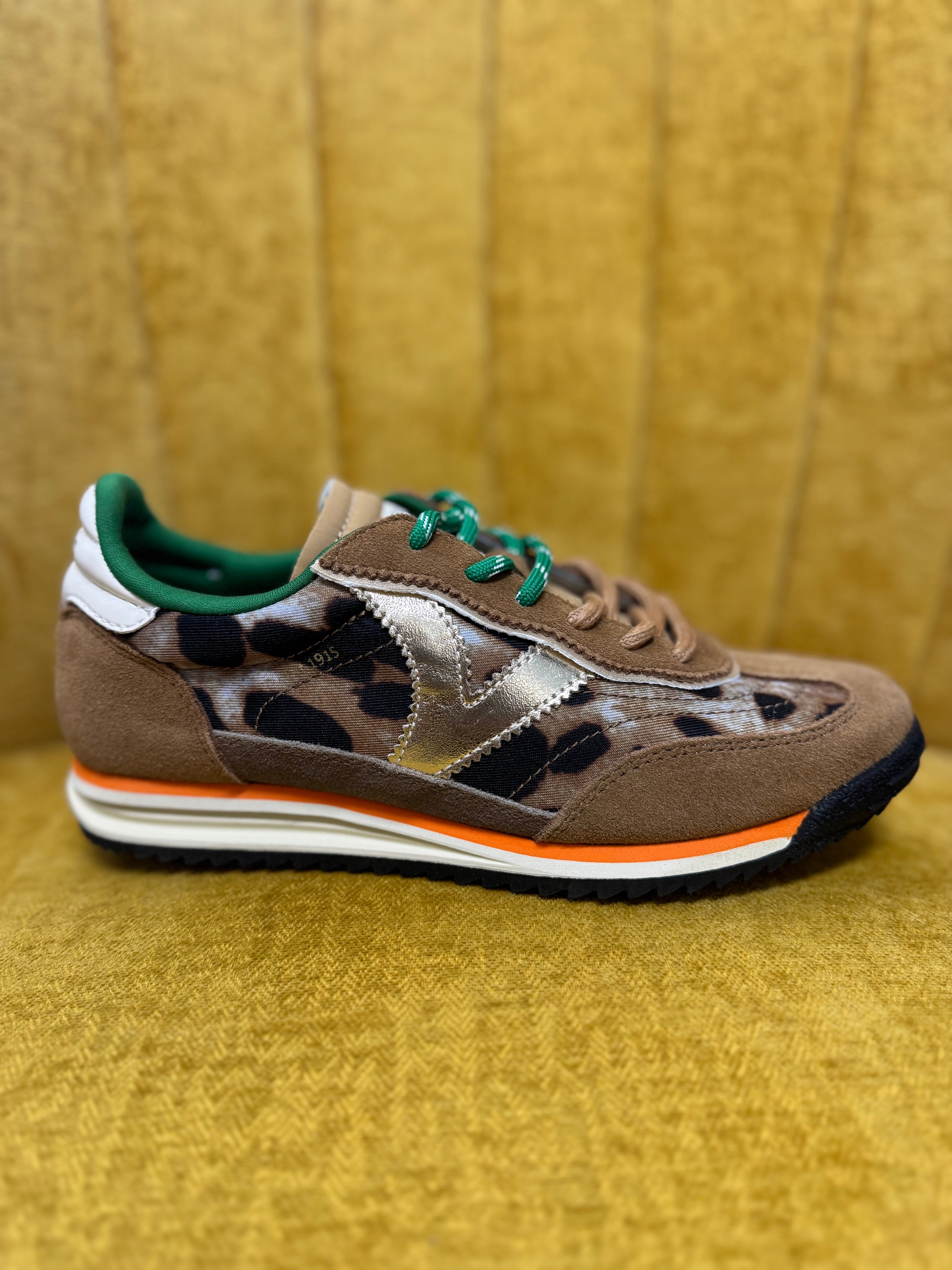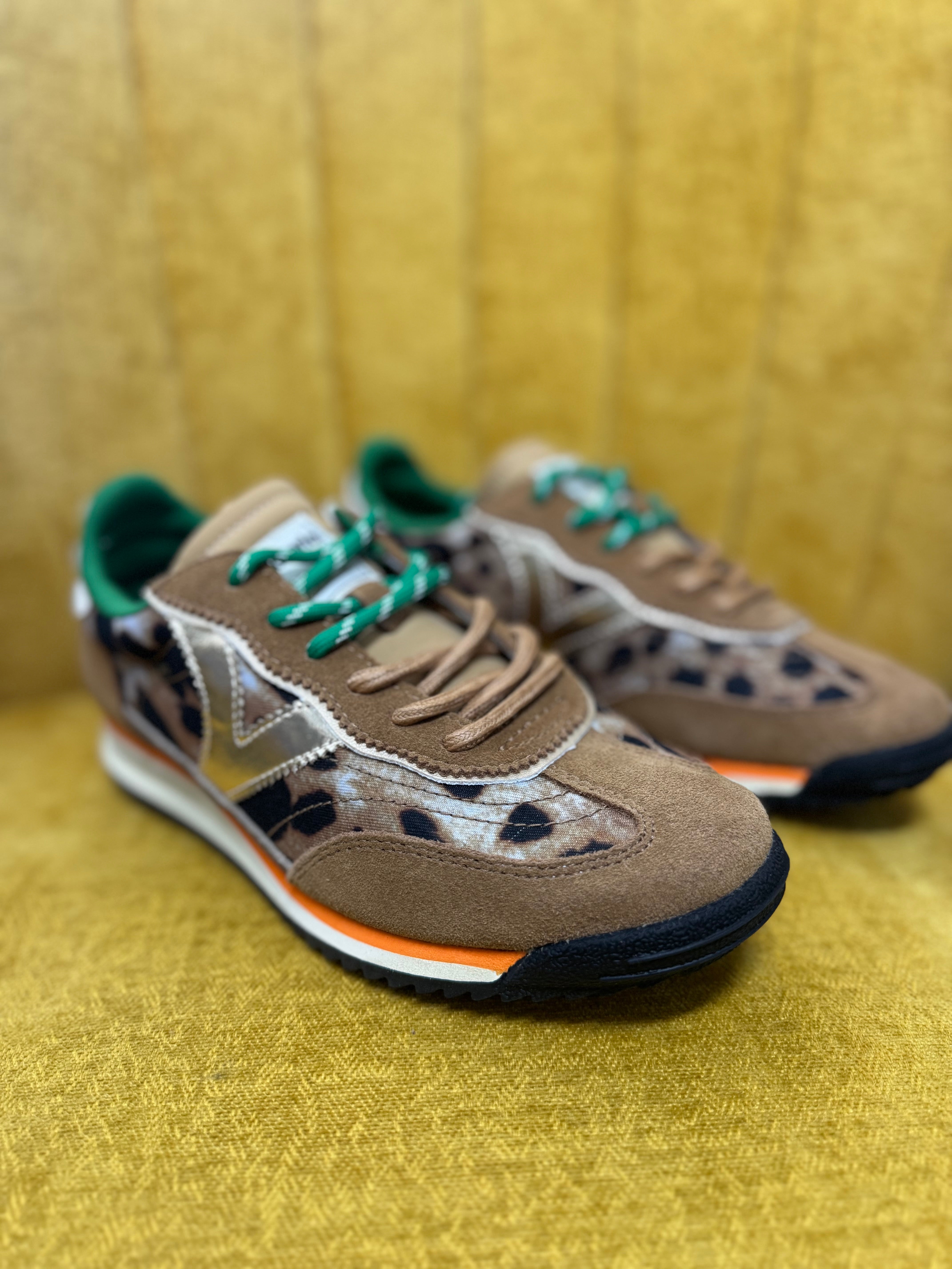 Bring a wild twist to your step with the Women's Saturn Animal sneakers! Featuring a lively mix of nylon animal print, suede, and synthetic panels, these shoes are as playful as they are stylish. Shiny metallic details on the side and heel catch the eye, while the white leather-effect logo adds a crisp contrast. Double laces—one matching, one speckled—let you mix and match your look. The two-tone sole and black serrated tread offer extra grip, so you can strut confidently wherever you go.